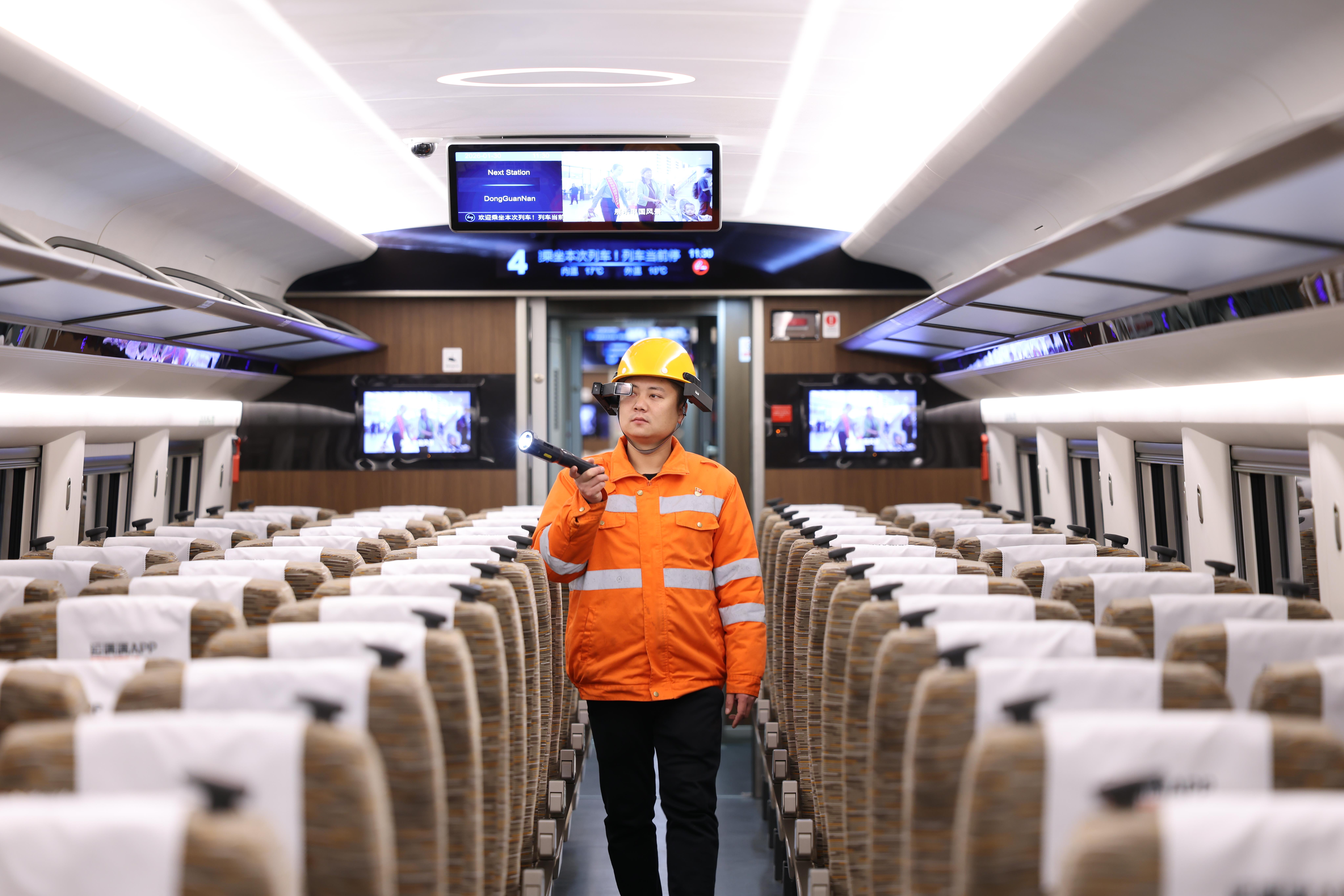 车外、车底有智能修复严格把关,车内客服尺度的老师,则靠AR头盔罢了精确核查。凌晨时间,当大无数东说念主已进入梦境,南昌西动车组利用二所专修本领专员正带领轻量化AR眼镜,对CR400AF-Z型回话号的车内尺度一一检讨。
