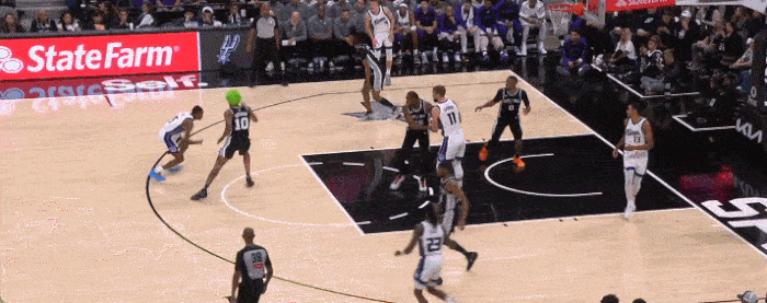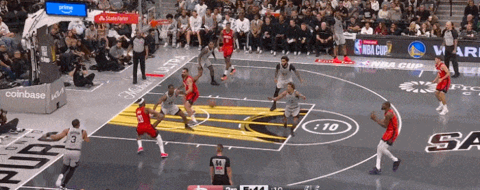 先是在内线和杰克逊卡位把他推出去 然后拿到球后 再给抵抗 干豫投篮
