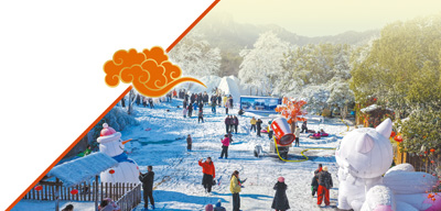 旅客在安徽芜湖市繁昌区孙村镇马仁奇峰景区冰雪乐土游玩。
