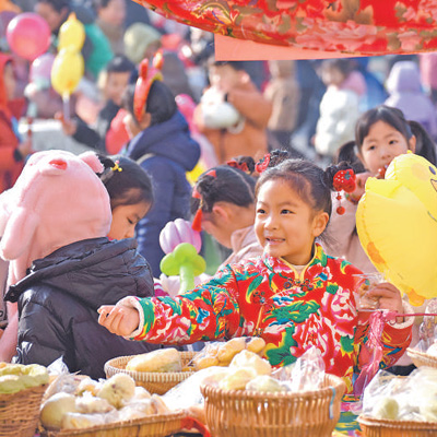 山东淄博市沂源县,小一又友参加“年集”行为。