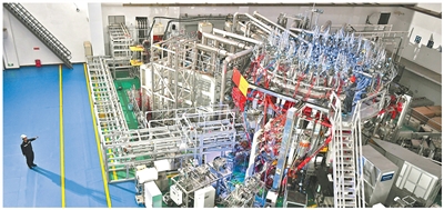 新一代东谈主造太阳“中国环流三号”装配升级纠正现场。该装配在国内初次已毕原子核温度1.17亿摄氏度、电子温度1.6亿摄氏度的“双亿度”冲破后,创下我国聚角色置初始记录,美艳我国聚变快速挺进拆除实验。