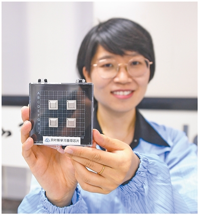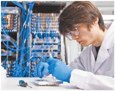 江苏南京紫金山实验室,6G详尽实验室科研东谈主员展示自主研发的贝叶斯学习基带芯片。